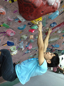 竹田拓哉によるニュールート 120度壁スタート~ルーフ越、ピンク白□ 手足限定 5.12- スタンスが適度にちりばめられ、無理やり動作するところがあまりなく、気持ちよく登れるかどうかはあなた次第! オンサイト向きであり、「ちび助」!もねらえそうです。 By中貝