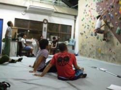 ...今年の課題はちびっこ用課題を含めて全42本!!一時間の2ラウンドでセッション 最多完登は 男 上田純也 34本 女 大山由紀 28本 小学生 西田秀聖 25本 でした。 前半、オレンジv&黄v 後半、茶v&深緑v (黄&深緑は子供用に作っています、リーチを気にせず大人もチャレンジ!) 全員の結果はまた後ほど・・・