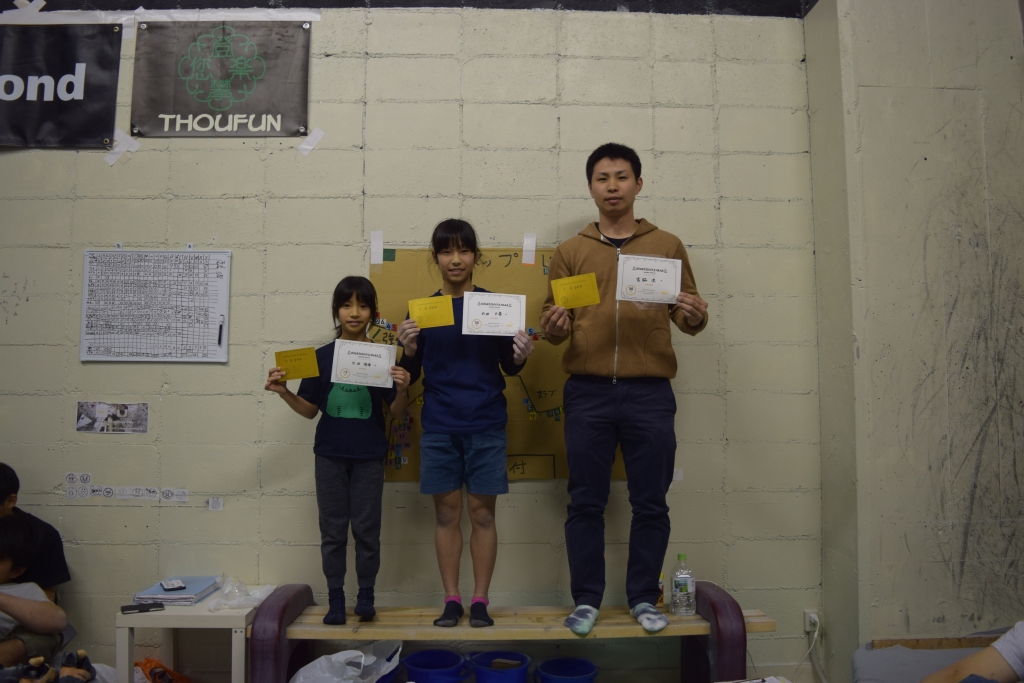各最多完登者には表彰状とナカガイクライミング各店で使える商品券が授与されました。