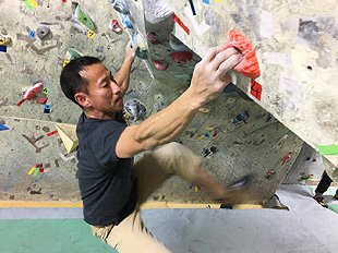 NKGIシリーズ復刻版の初戦、いかがでしたでしょうか? フタを開けてみれば16名と予想を上回る参加! オンサイト一発勝負、普段あまりない環境の中でのトライはなかなか刺激的だったのではないでしょうか。 ジャッジしているこちらも参加者の緊張感が伝わってきて、とても楽しませてもらいました。 優勝は最終課題の終了点手前まで迫ったムラタくん!欲を言えば登り切ってほしかった! しかし楽しすぎてついつい終了時間が押してしまい申し訳ありません。 さてロングボルダー3本の内容ですが、 1本目、ピンクスラッシュ、5b+(25手) 2本目、茶色スラッシュ、5c+(23手) 3本目、オレンジスラッシュ、7a~7a+(32手) 設定は1本目:山田、2本目:正田、3本目:正田(←山田が修正しています)でした。 課題は常設で残しますので当日登りにこれなかった方もそれぞれ取り組んで、さらに練習に取り入れてみ