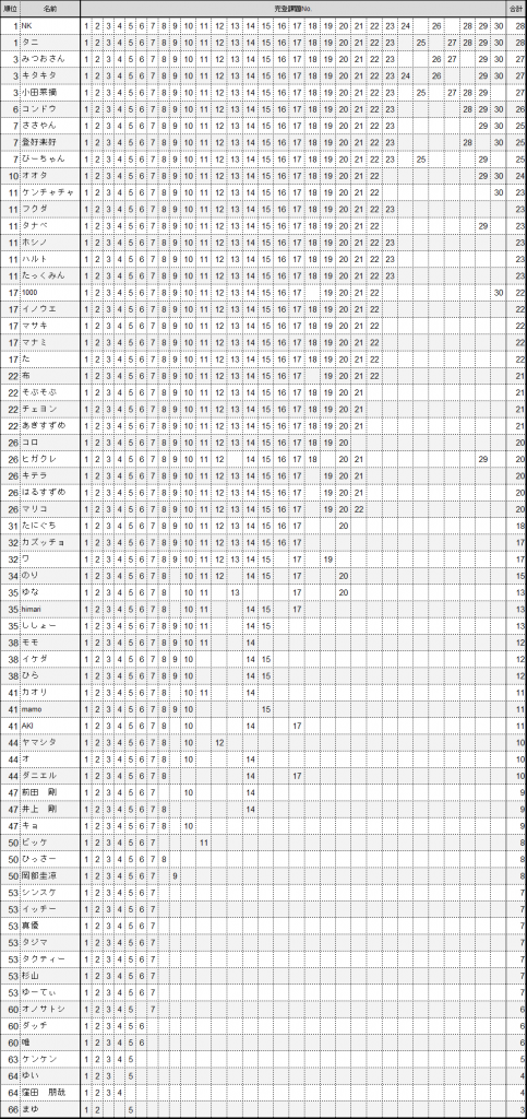 最多完登者は2名!タニさんがNKさんに追いつき、同数で1位に決定です。