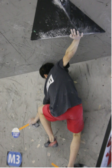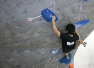 ユースC男子も専用の課題で設定されました。4名が参加し優勝したのは吉野惺太選手。1課題目で苦戦しましたが残り3課題はオンサイトで全て完登。2位は北川嶺大選手、3位は東口督選手でした。