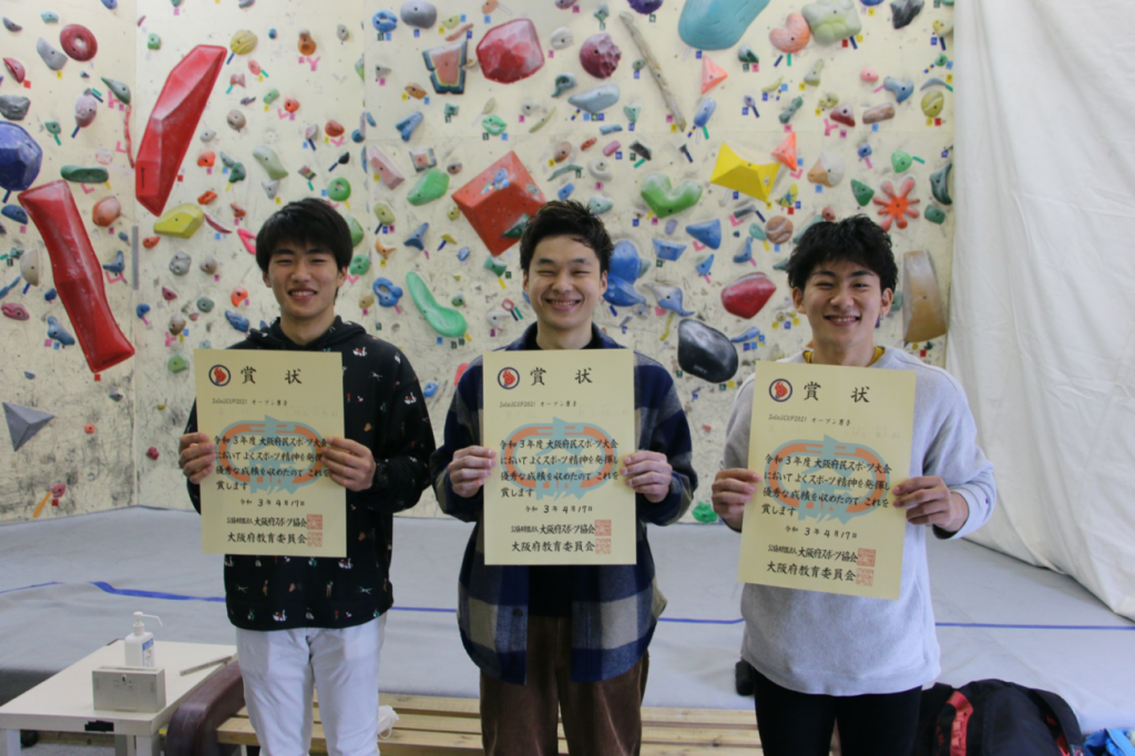 優勝は中山拓弥選手、2位西美柚奈選手、3位幕内心愛選手。3名とも4T4Zで完登のアテンプト差での結果になりました、
