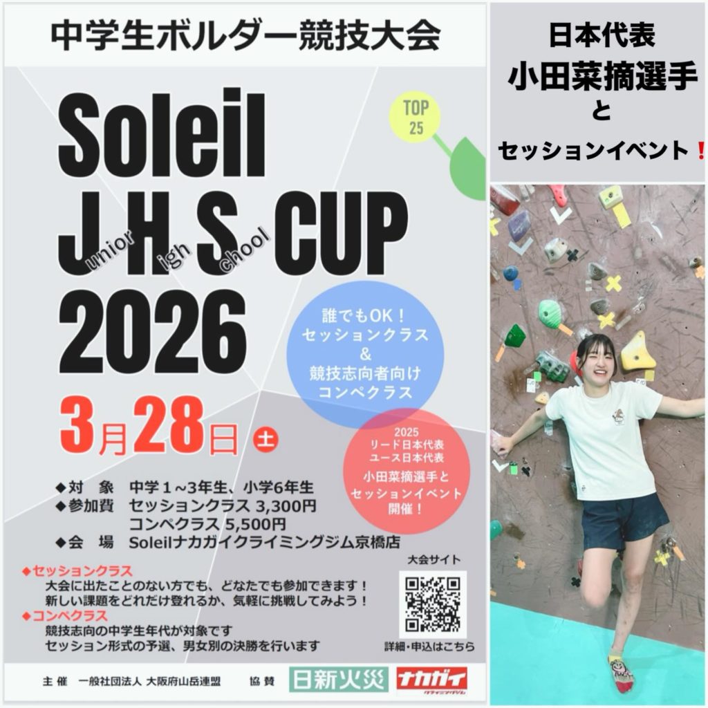 SOLEIL JHS CUP 2026 中学生ボルダー競技会の申込締め切りは今日までです❗️