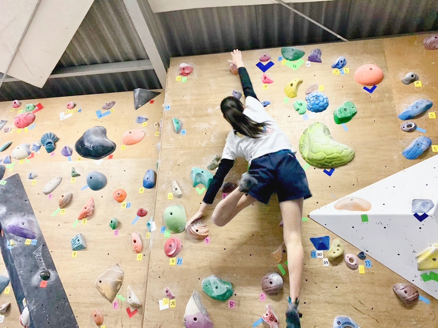各課題にはテープなどの目印で、使ってもいいホールドが示されています。