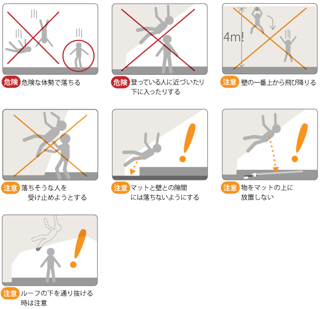 クライミングは危険を伴うスポーツですので、説明を聞いていただき、インストラクターの指示に従ってください。
