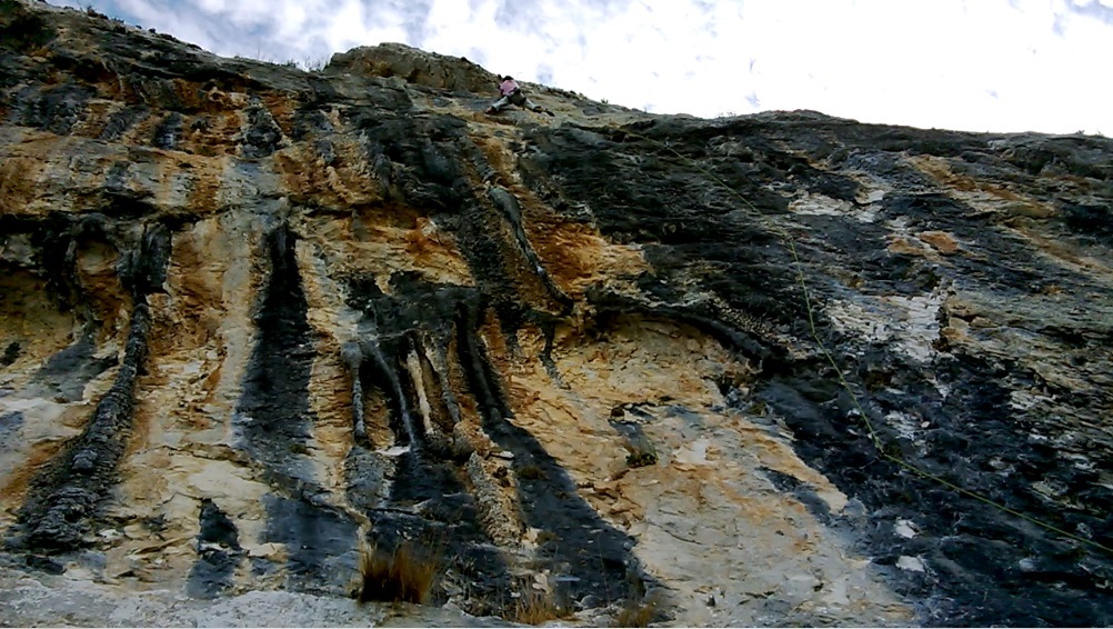 宿から葡萄の木、オリーブ畑、番犬たちを過ぎるとそこが岩場です。