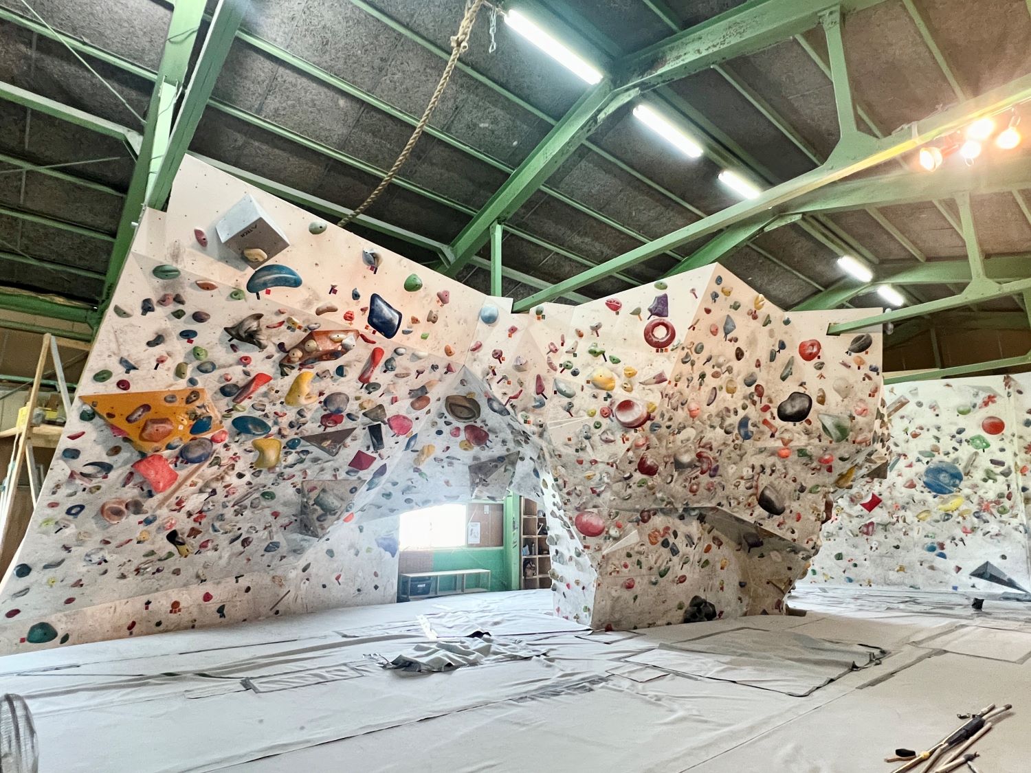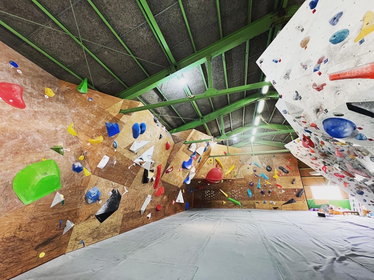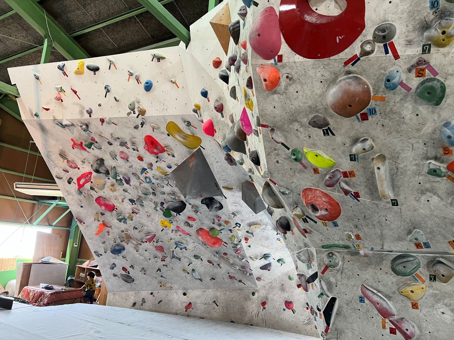 自然の岩をモチーフにした様々な形状の壁に初心者から上級者まで楽しめるコースが設定されています。そして奥には壮大なスケールのコンペウォール! スラブ、緩傾斜、強傾斜、ルーフ、垂壁があり、そこにはコンペシミュレーションができる課題が定期的にチェンジされています!